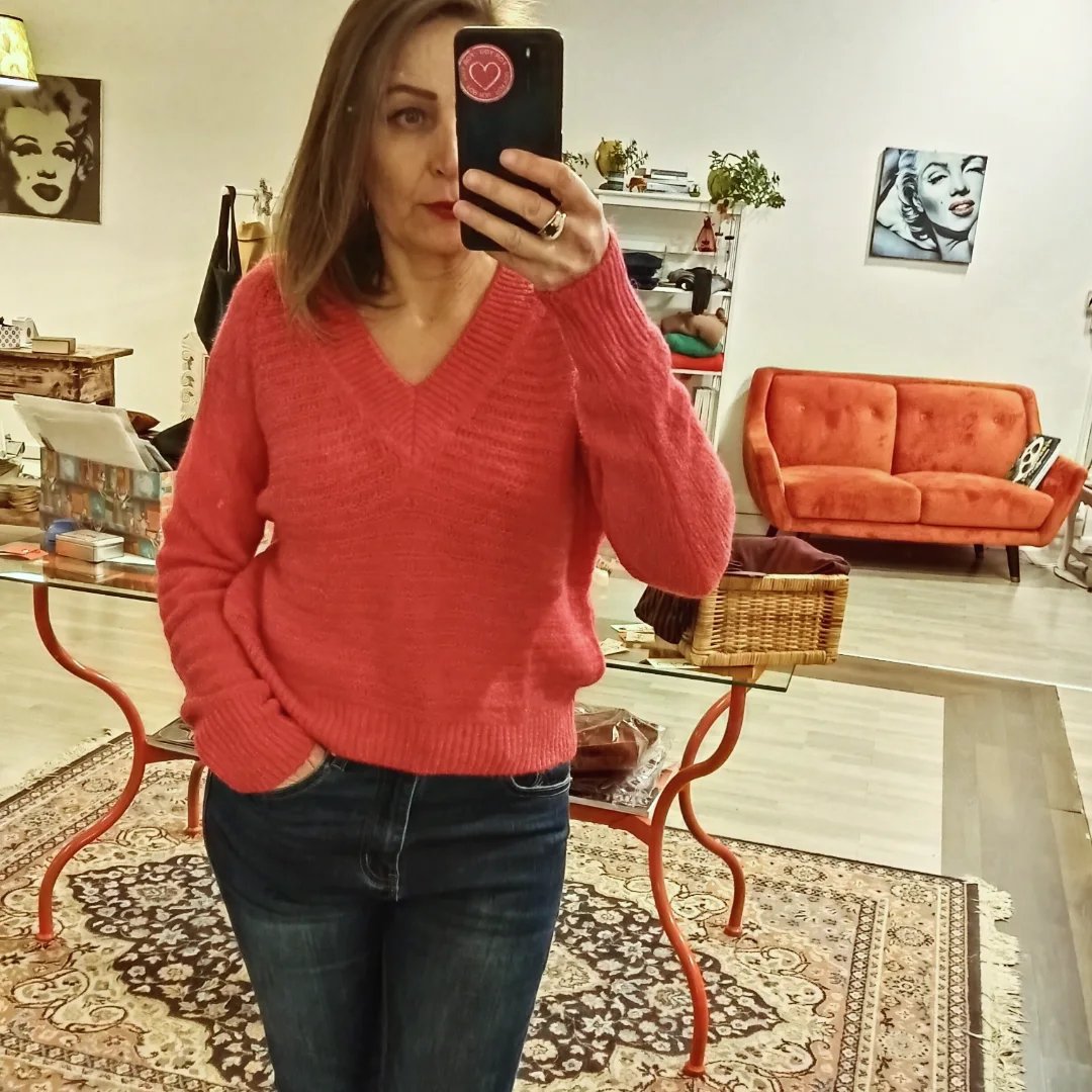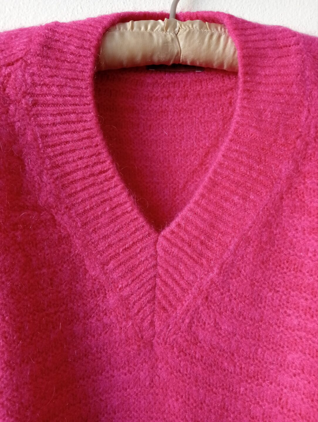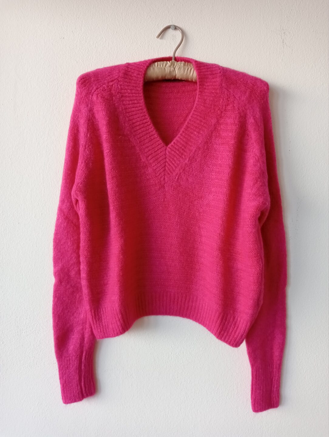 Maglia modello a V in misto lana mohair fucsia.
